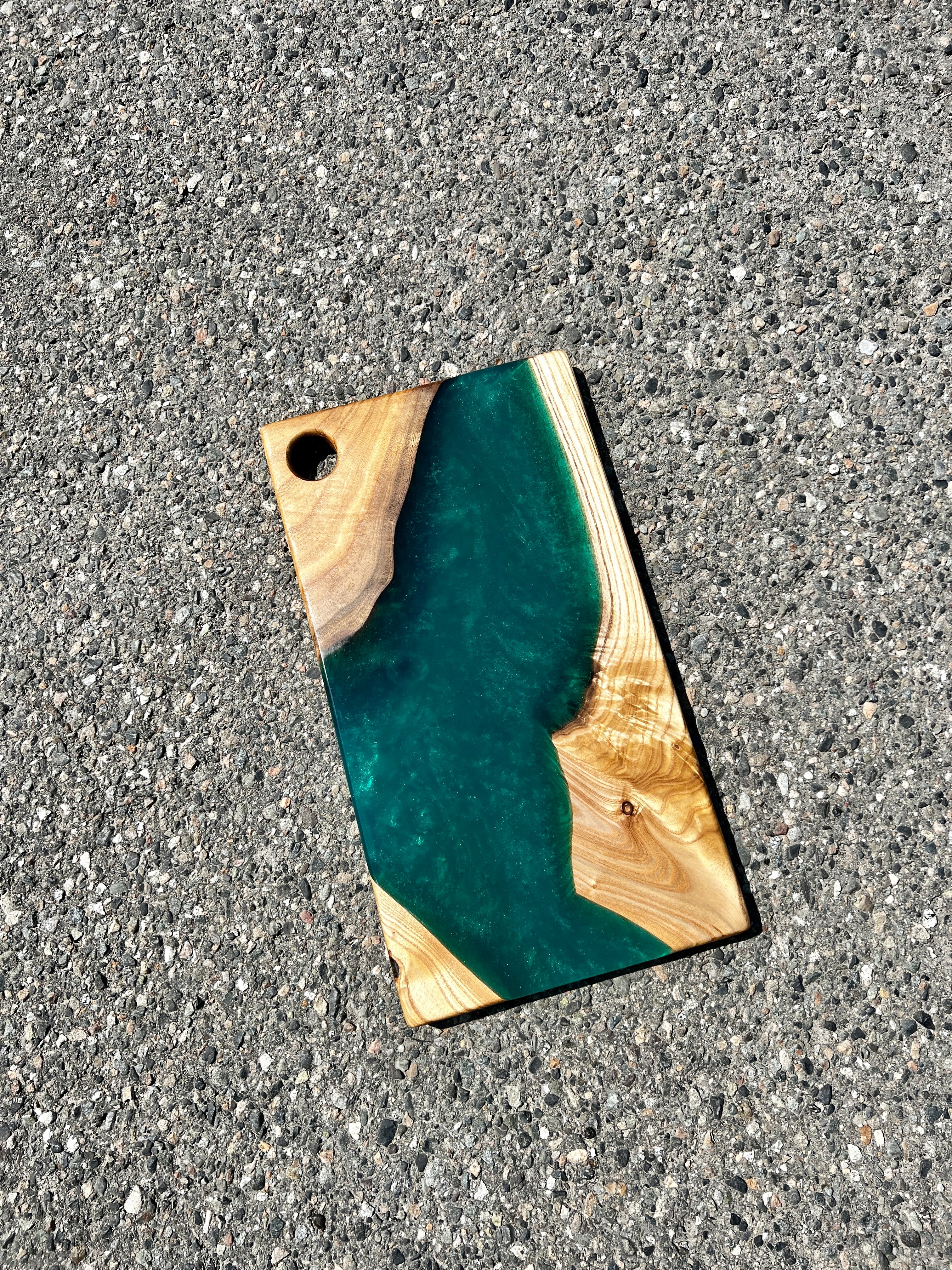 Live Edge Catalpa Pieces & Metallic Emerald Green Resin Filled Charcuterie Board