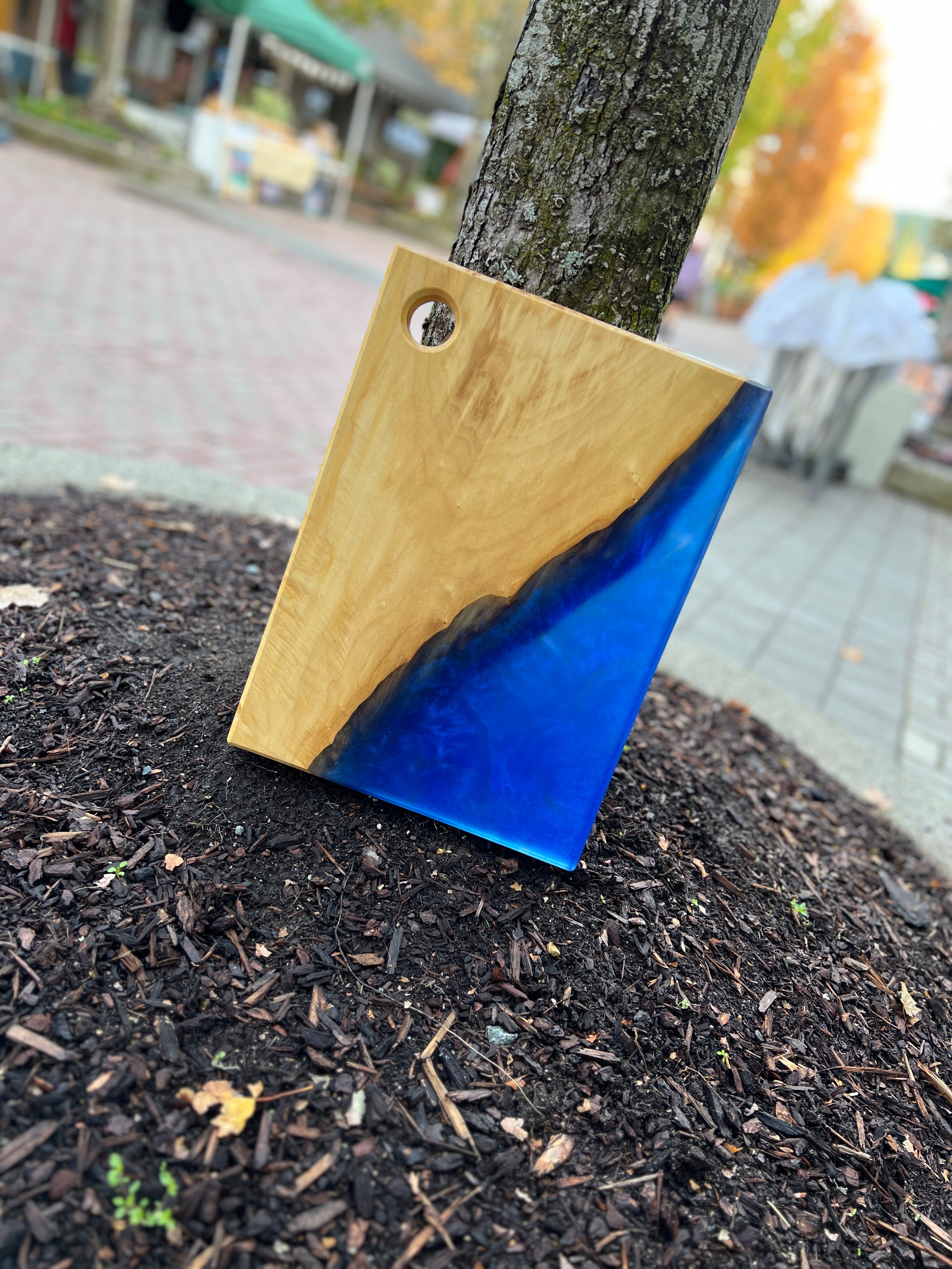 Figured Maple & Royal Blue Resin Charcuterie Board